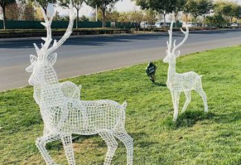 鐵藝梅花鹿雕塑,鏤空低頭更具韻味