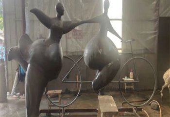 仿銅騎自行車抽象人物玻璃鋼雕塑