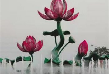 大型不銹鋼彩繪荷花噴泉水景雕塑