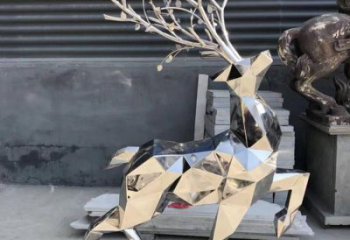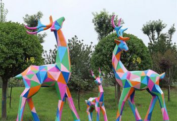 不銹鋼彩繪抽象梅花鹿雕塑——抽象美學與幾何精致相結合