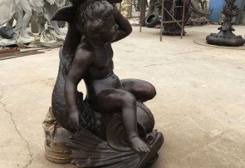 溫柔與可愛兒童與小鹿景觀銅雕