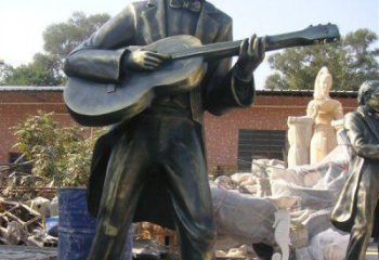 西方雕塑,精致銅雕,彈吉他的男人