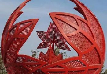 紅色不銹鋼楓葉景觀雕塑,精美絕倫