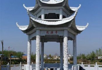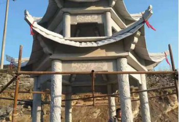青石仿古石雕涼亭,營造寧靜田園風情