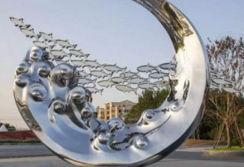 不銹鋼喇叭雕塑,顏色鮮亮,高低錯落,充滿藝術性。