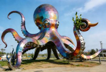 這組不銹鋼景觀雕塑以抽象手法重構草莓形態(tài),金屬質感與孔洞肌理消解了水果的柔軟屬性,在傳統(tǒng)建筑與現(xiàn)代都市背景下,形成自然符號與工業(yè)材料的對話,成為公共空間中兼具視覺張力與文化隱喻的藝術裝置。