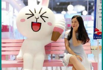 步行街白色石雕兔子雕塑
