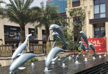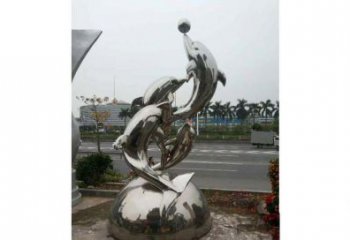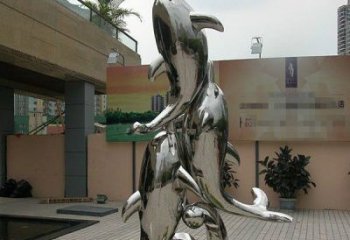 高端不銹鋼海豚雕塑,為售樓部門口增添完美視覺